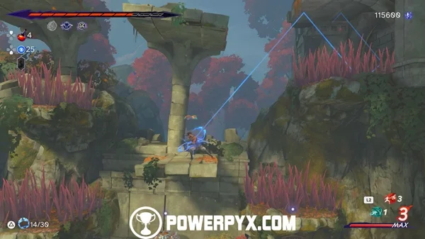 为了让这个箱子出现,你必须在它重新长出来之前,从所有 4 个阶段砍掉所有红草。一个简单的方法是将次元爪扔到右上方。