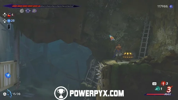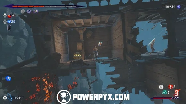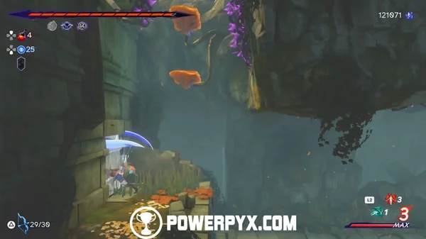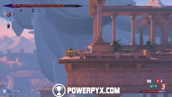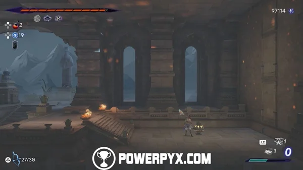 在上面跳跃后,在半空中进行第二次跳跃,用 Shadow of the Simurgh 复制自己。然后让自己下蹲来激活另一条石蛇。现在立即激活你的副本,从石蛇上跳两跳,到达你上方沙瓶所在的路径。