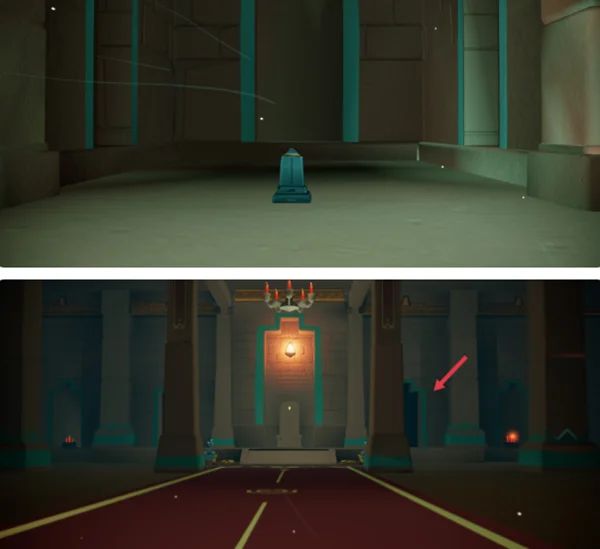 玩家们来到了城堡的位置,进入城堡后乘坐电梯上了二楼,然后是来到这个宝座地方,从右边的一扇门进去,在房间中一堆杂物的后面,就能够找到王后先祖了。