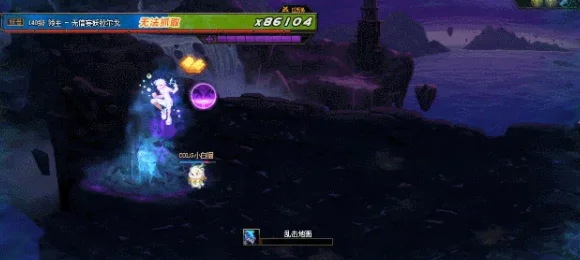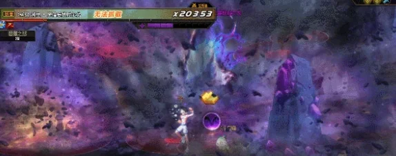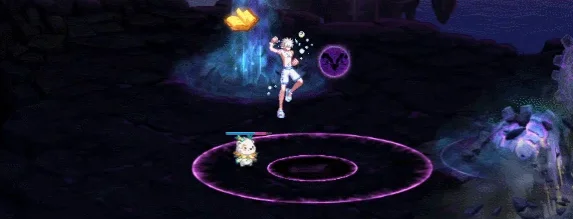 此时地面生成紫色范围提示,石头落下时范围内没有玩家则会造成大范围攻击,需要1名玩家站在范围内