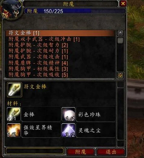 结合灵魂之尘*2,强效星界精华*2,彩色珍珠、金棒和符文银棒,制作你的符文金棒。