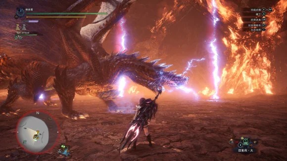 首先是抬头随机落雷,与麒麟的随机雷很像,但是煌黑的落雷命中率极其感人,站在头右侧或身下输出即可,我完全不躲这招的情况下命中率大概十分之一吧,最佳输出点之一