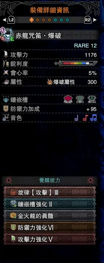 防具是绚辉龙4件加金火龙两件(防具一件,词条一个)。
