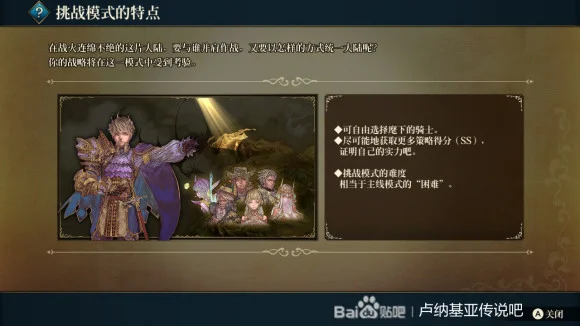 挑战模式是幻想大陆战纪卢纳基亚传说中的模式之一,改模式会在玩家任意难度的故事模式通关后解锁,下面就为大家带来由“风萤月2333”分享的挑战模式攻略,供各位玩家们参考。