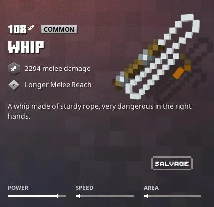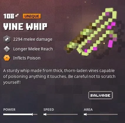 描述:用厚实且充满刺的葡萄藤製成的坚固鞭子,能够使接触到的任何生物中毒。注意不要刮伤自己!