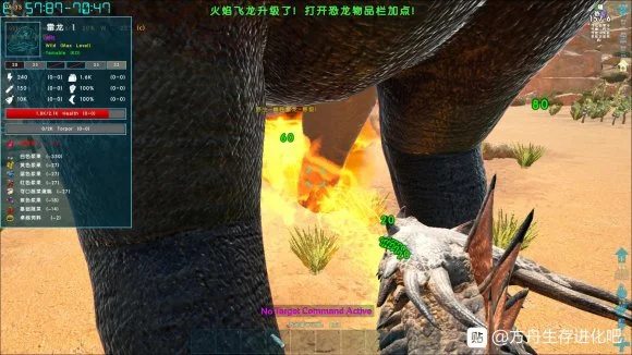首先是元素飞龙的数据,因为元素飞龙有友伤且无减免,测试对象是驯服的一级雷龙,也同样会用野生龙对照伤害,因为1级元素龙初试伤害是88.2,不足百分百,所以升了8级,把伤害升到了100.2