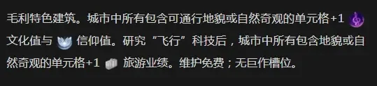 没有破坏的地貌到后期还能直接修上国家公园,加上毛利很多城市都沿海所以基本不会缺能修国家公园的地方,而且毛利会堂本身还会再加1旅游业绩,这文化胜利用爬的都比其他人走得快。