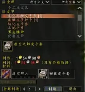 2、韧化皮手套需要135级的制皮才可以制作出来。