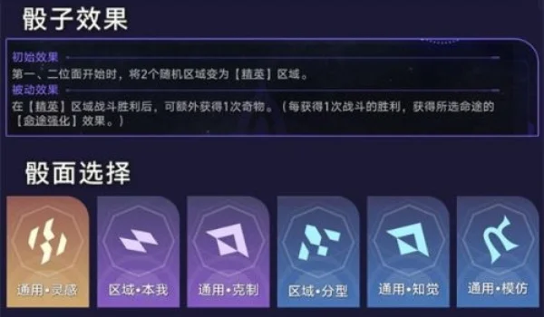 2、骰面选择通用·灵感、区域·本我、通用·抑制、区域·分型、通用·知觉和通用·模仿。