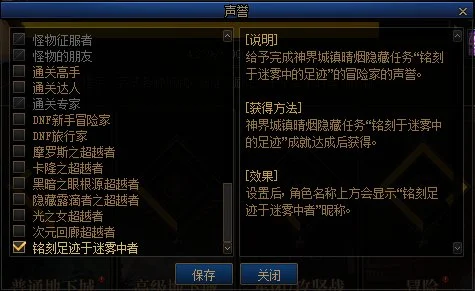dnf铭刻足迹于迷雾中者声誉获得方法