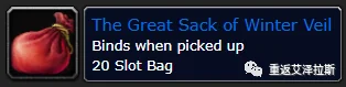 它们成长得多么快啊……你甚至可能忘记了它们是巨大的冰霜恶魔。雪球在山谷里横冲直撞,吓跑了所有其他动物。是时候让他睡觉了!击败凶猛的丹莫罗狼,并获得一个袋子作为奖励,里面装着你随身携带的所有礼物!听说有20个空格!
