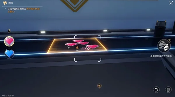 2、然后在阮·梅经过的路(发光区域)喷上涂鸦大量爱心,最多存在八个爱心涂鸦。