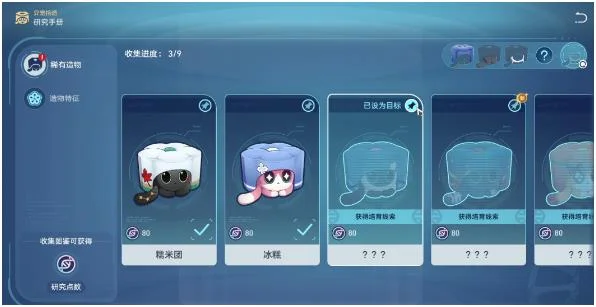 4、培育最新的【桂花糕猫】,点击下图界面左侧的【研究手册】,切换目标【桂花糕猫(阮梅喵)】;