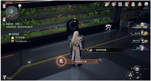 3、桂花糕猫任意放在这两个位置,两个任务【查房休息区】和【新食堂验收】完成,回到【保姆机器人】附近和【生命烘焙箱】交互;