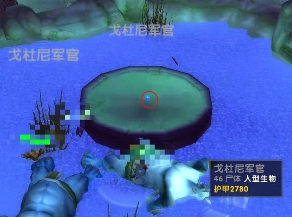 在废墟水池中间,有一个蓝色的发光宝石。任务奖励是一个很极品的板甲头盔 我42级就能穿。