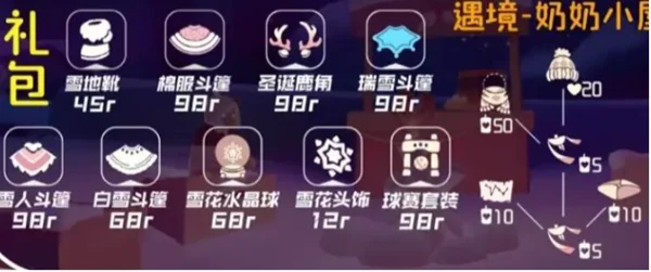圣诞鹿角礼包、暖冬瑞雪礼包这两个是在秘密基地的楼顶上购买。