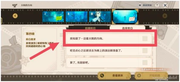 第四镜选择旁白:〔我知道了…沿着太阳的方向。〕