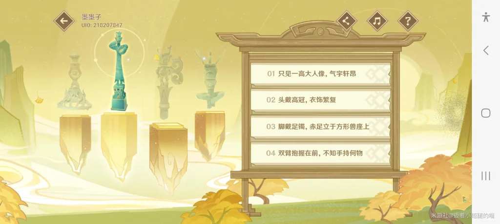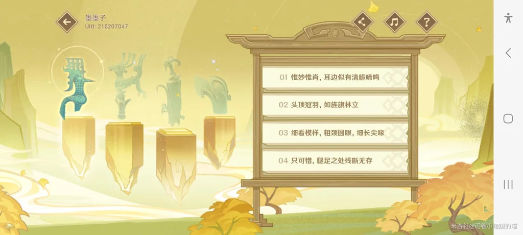 四个文物全部选择完毕以后,即刻解锁四段文物解说语音,还有原石奖励。