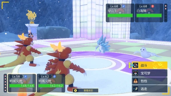 茶色的宝可梦就是极地区附近的宝可梦,我们只需要在挑战的舞台周围去捕捉就好。