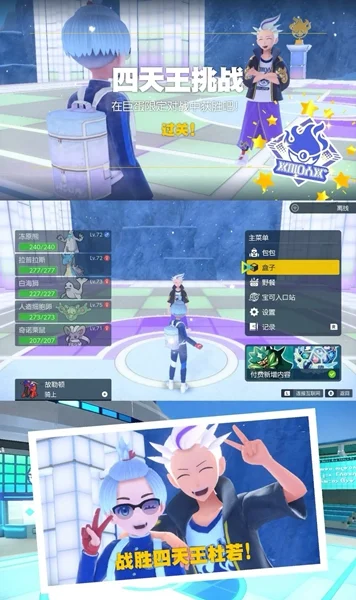 对战都是双打,而且四天王会开始使用各种道具,以及配合天气、宝可梦特性和技能组合打法