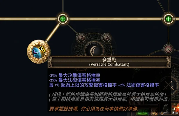 利用多面好手的天赋大点,搭配卫士升华和天赋的格挡点数,让我们的攻击格挡和法术格挡拉满到50%