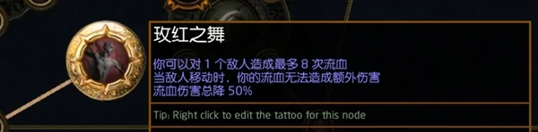 此BD因为点了玫红之舞,所以流血可以叠8层,但是敌人移动时候流血无法造成额外伤害,而且每层流血伤害降低50%,总的来说,利大于弊,除了流血弓的流血玩法,一般来说目前的流血流派都是点玫红之舞的。