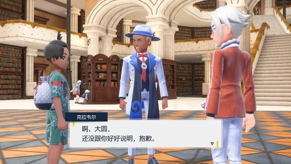 2、来到学院大厅这里,会捡到蓝莓学园的校长席蓝,他就是本次要带我们前往DLC新地区的负责人了。