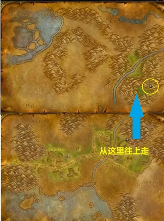 如果你一直在探索希尔斯布莱德丘陵,南海镇和塔伦米尔的NPC会告诉你,他们来到这个地方是为了寻找一块巨大的光石柱,这块石头从空中坠落并坠落在奥特兰克山脉,玩家要按照图中指示的路线前往该处使用柱子摧毁盒子,获得【虚空碎片】。