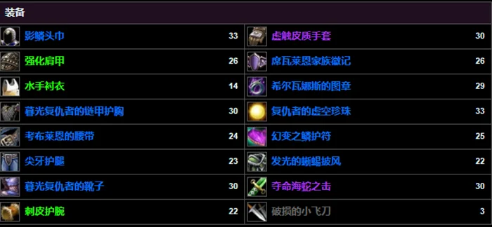首先看装备,大家都会注意到紫色的双手剑夺命海蛇之击。这个武器非常适合冲榜,幸好黑暗深渊CD只有3天,同时紫色武器的掉率也不低,只要坚持不懈,肯定会有好的收获。另一个值得注意的地方就是他没有穿上紫色锻造胸甲,而是选择了紫色的制皮手套。原因之一是手套不会与套装的位置互相冲突,同时制皮手套的特效是增加输出,而锻造胸甲的特效则是增加防御。