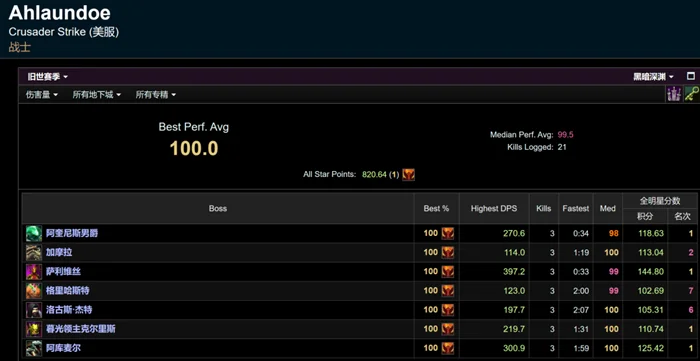 以上内容介绍了魔兽世界怀旧服探索赛季黑暗深渊的全程以及各个BOSS的DPS排行榜。可以看出,在全部7个BOSS中,有5个BOSS的DPS排名前五位的都是战士。仅有2号BOSS加摩拉没有战士进入前五。全程总榜第一名的战士更是在DPS方面压倒其他玩家。