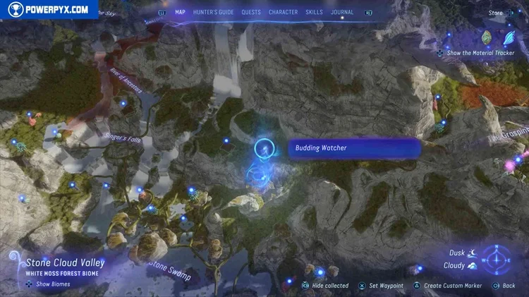 在他们的位置,你会发现一个大蘑菇,叫做“萌芽观察者”。您必须沿着小白蘑菇生长的路径沿着蘑菇的根部前进。在每条路径的尽头都有一个中等大小的蘑菇,你必须与之互动。然后回到大蘑菇,沿着下一条路径走,重复这个步骤,直到你走完所有路径并激活所有蘑菇。然后,大的“萌芽观察者”蘑菇将打开。走进萌芽守望者,掠夺里面的物品以“完成”收藏品。它们都很容易做到,只需要跑来跑去。所有这些都可以在游戏的第三个区域找到,称为“云雾森林”。