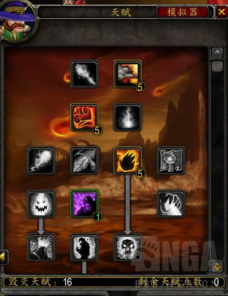 输出手法就比较简单,起手鲁莽诅咒,烧尽然后卡CD脑残箭,保持献祭就OK了。