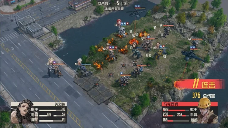 走位躲避地雷地形,然后继续集火攻击地雷boss,直升机不用管