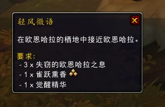 当你拿到3个失窃的欧恩哈拉之息之后再去找戈多罗托,它会给你提供“轻风微语”任务,要求你在欧恩哈拉的栖地接近欧恩哈拉。