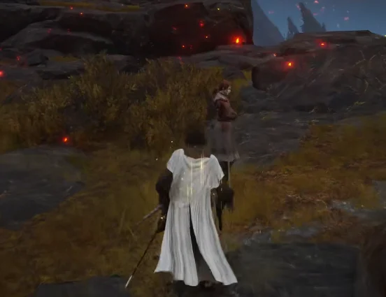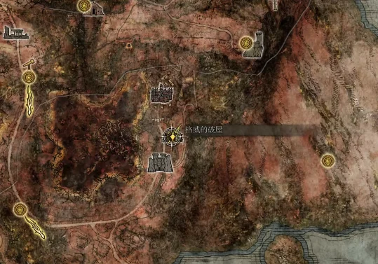 12.上图位置返回之前的猩红沼泽,对面池塘中有一个腐败树灵,击败树灵后坐赐福刷新地图,对面坡上会有两个符,选择帮助米莉森,二打四,击败他的四个姐妹